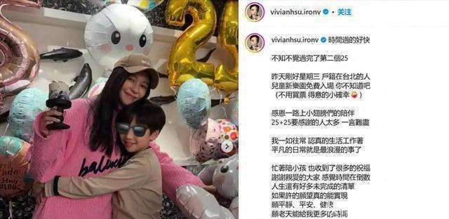 徐若瑄的50岁生日派对那可真是热闹又温馨。她穿着一件粉色毛衣,一头黑色长发披肩,头上戴着卡其色帽子,气色相当不错,笑容明媚得很呢。她身旁是她9岁的儿子,小家伙遗传了妈妈的高颜值,模样俊秀。母子俩头贴着头相拥,画面温馨极了。她的闺蜜林心如也来捧场了,49岁的林心如打扮休闲,灰色绣花毛衣搭配修身牛仔裤,长发飘飘还戴着卡其色帽子,看起来容光焕发。她俩亲昵地搂抱还亲吻脸颊,真让人感动。整个派对场景布置得超级梦幻,到处都是童趣满满的装饰,还有数不清的卡通气球,“25”字样在墙面上很是显眼。